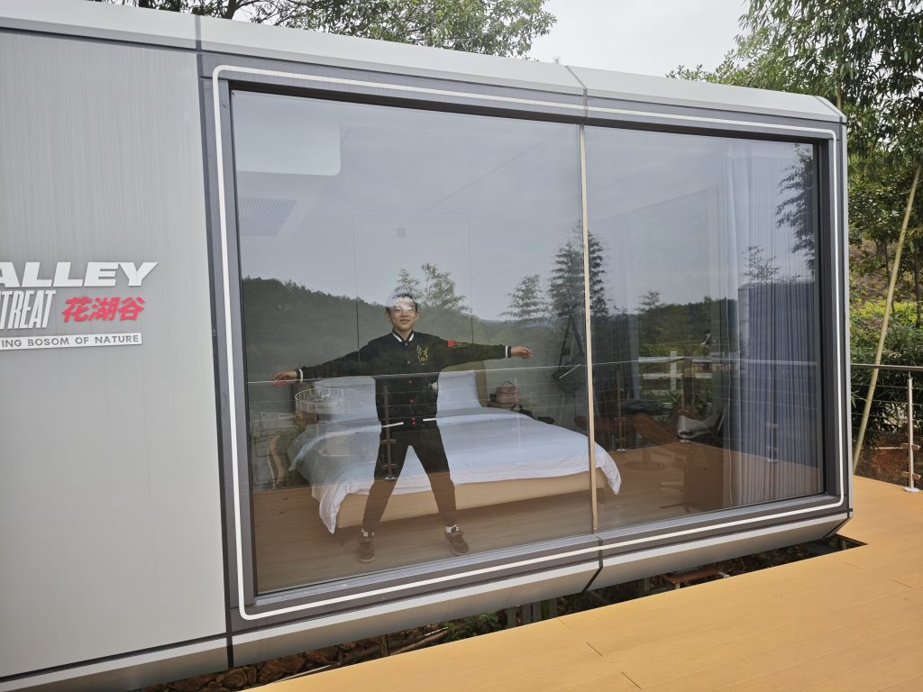 在国庆后,我们还在一个周末去了个地方玩,开车去的,不远,株洲茶陵花湖谷,一直在抖音上看过几次介绍了,终于是在大家的努力下,我们成行了!去了后,首先让我们惊讶的就是住宿的地方,没想到太空舱式住宿还真是太空舱了!哈哈哈……