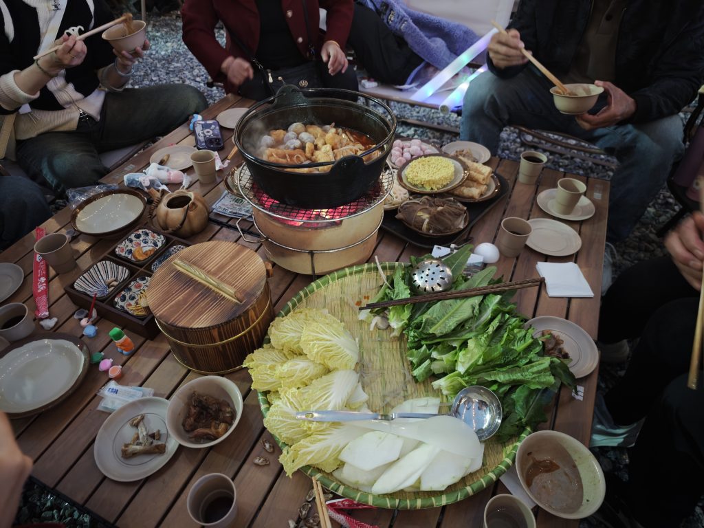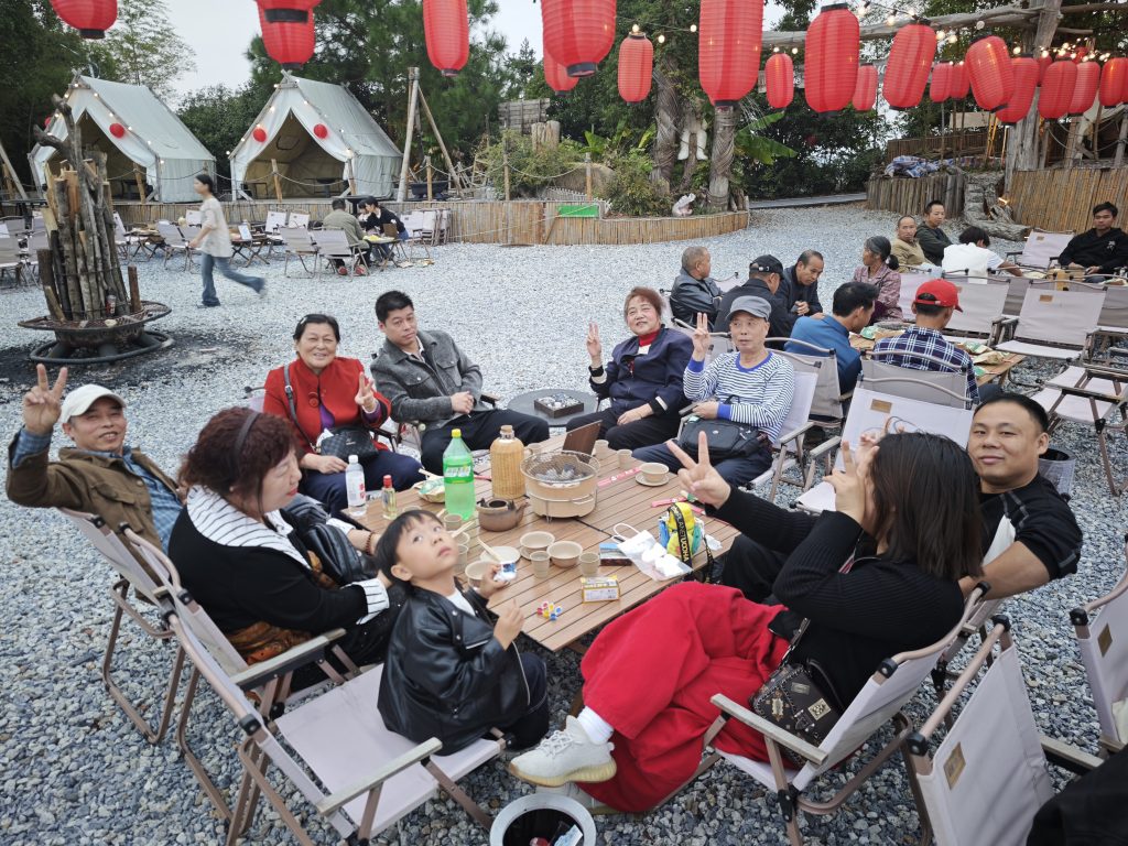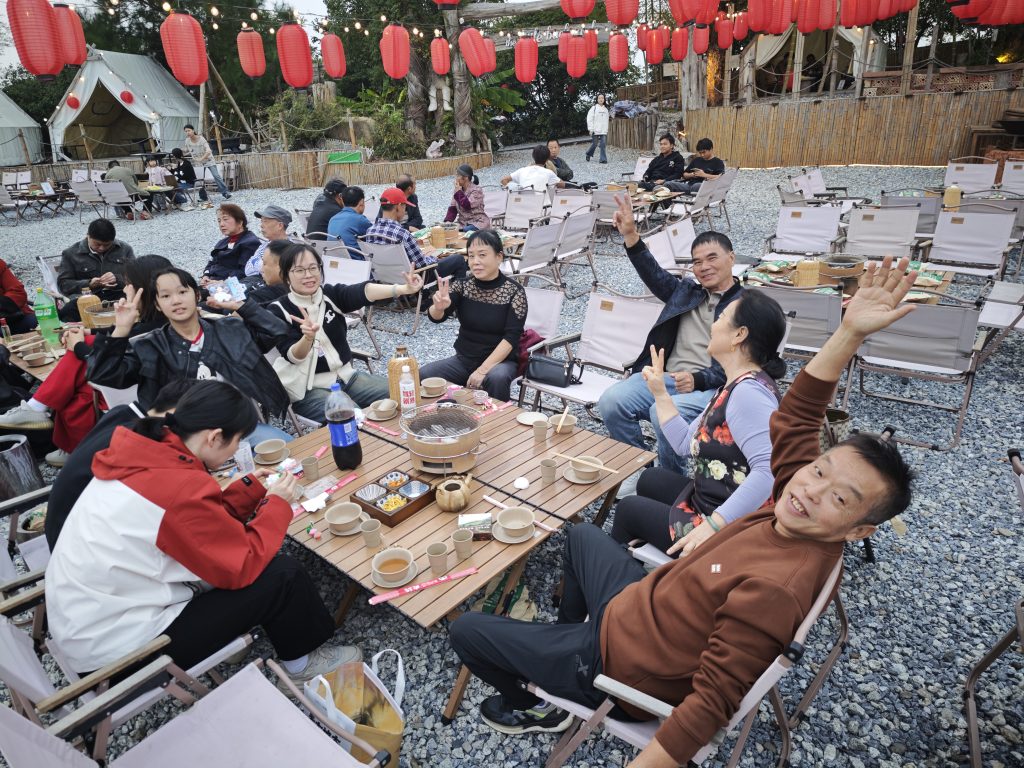 然后晚饭,我们在花湖谷吃了顿丰盛的火锅炖鸡大餐!
