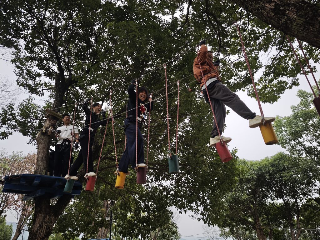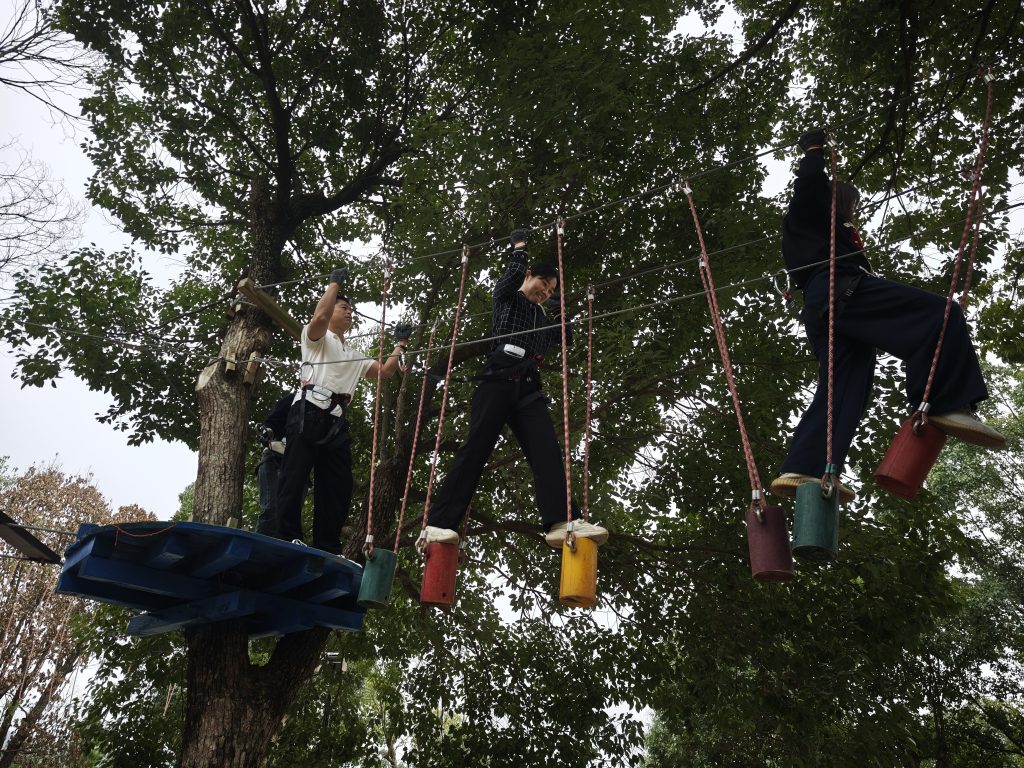 老婆还是蛮厉害的,挑战了全部的高空探险项目!